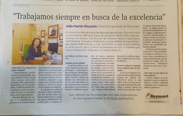 Julia Martín Royuela Directora general de Roymart. Empresa familiar asturiana de segunda generación, Roymart inicia su actividad en 1981 de la mano de Jerónimo Martín Pérez para dedicarse a la venta y distribución de material médico-quirúrgico, centrándose en buena medida en la especialidad de traumatología. Desde 1998 la dirige su hija, Julia Martín, a quien…